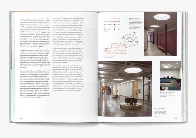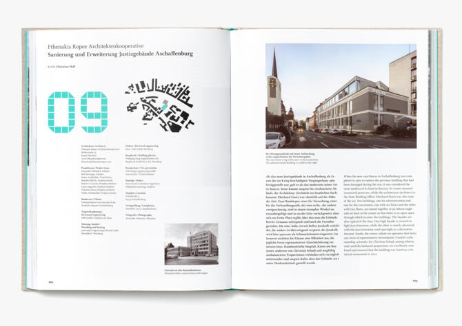 "The supposed naturalness with which old and new enter into a successful liaison can be seen in the folded-out window front on the front side of the central corridor of the vertical extension. Developed in discussions with the client and monument preservation authorities and in many design alternatives, it takes up the façade axis of the administration building, which is twisted into the hall construction, and thereby decisively enlivens the extension. It elevates the extension to more than a pragmatic addition and shows that far more has been achieved here than just updating the existing building. It has not only been expanded spatially, but also in terms of its architectural vocabulary. In this mixture of respect for the existing building and self-confident updating, the courthouse will serve as a role model again in 2022 - and not only in Bavaria."