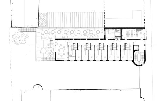 m neu gebauten Generationenhaus sollen Kleinkinder, Studierende und Auszubildende sowie ältere, pflegebürftige Menschen gemeinsam unter einem Dach leben. Eine starke Vernetzung zwischen Innen- und Außenraum spielt eine zentrale Rolle im Konzept des Generationenhauses. Der Kirchenvorplatz dient als Versammlungsstätte der Gemeinde sowie als bespielbarer Außenraum des neuen Generationenhauses. Durch die Abstufung des Gebäudes werden begehbare Terrassen auf allen Geschossen angeboten.