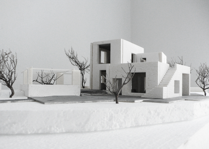 Das Grundstück auf welchem der sommerliche Wohnsitz für eine Familie entstehen soll, liegt im Süden der Insel Sifnos. Starke Hanglage und eine weite Aussicht auf die benachbarten Kykladeninseln. Das Haus ist in einzelne, unabhängige Baukörper gegliedert. Setzung und Silhouette der weiss geschlämmten Konstruktionen aus Bruchstein und Beton sind geprägt durch die topografische Struktur und Geometrie des ummauerten Grundstücks, sowie durch die Auseinandersetzung mit der lokalen Bautradition.