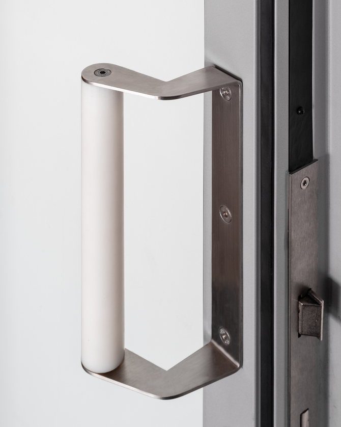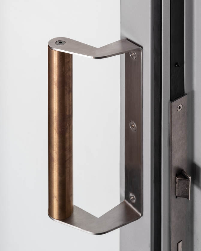 Der Prototyp des Türgriffs wurde von Fthenakis Ropee für die eigenen Büroräume entwickelt. Er besteht aus einem Haltebügel aus gelasertem und gefaltetem Edelstahlblech, in welchen Griffstangen aus unterschiedlichsten Materialien austauschbar fixiert werden können: Kunststoff, Metall, aber auch Holz oder Plexiglas sind denkbar.