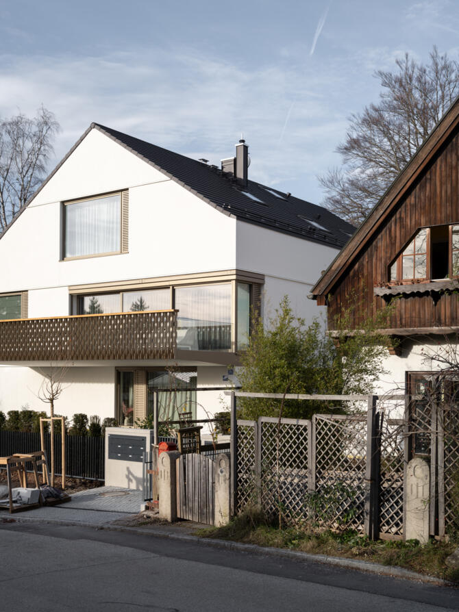 Two small residential buildings with five genereous appartments in the immediate surroundings of the summer palace of the former bavarian king Ludwig II. The buildings are constructed in a mixed structure in whitewashed brick and concrete.