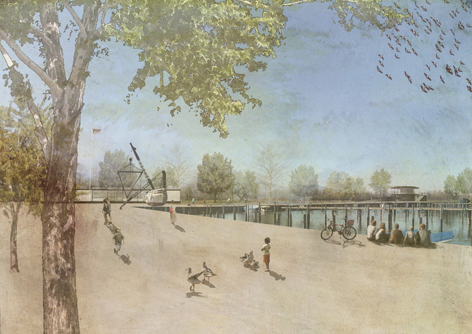 Das Projekt öffnet das Strandbadareal um es in die bestehende Uferparklandschaft zu integrieren. Die sperrigen Bauten des "Thalerareals" am Hafenbecken und das alte Strandbadgebäude werden abgebrochen und durch drei neue, in die Uferlandschaft eingestreute Gebäude ersetzt: einem flachen Yachtclubgebäude am Hafenbecken, dem vorgelagerten, pavillonartigen Seerestaurant und einer langgestreckten Strandbadgebäude in unmittelbarer Nachbarschaft der zu erhaltenden Schwimmbecken. Der bestehende Parkplatz, der bislang das Hafenbecken besetzt, wird verlagert um die Schaffung eines neuen Hafenplatzes zu ermöglichen.