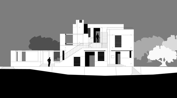 Das Grundstück auf welchem der sommerliche Wohnsitz für eine Familie entstehen soll, liegt im Süden der Insel Sifnos. Starke Hanglage und eine weite Aussicht auf die benachbarten Kykladeninseln. Das Haus ist in einzelne, unabhängige Baukörper gegliedert. Setzung und Silhouette der weiss geschlämmten Konstruktionen aus Bruchstein und Beton sind geprägt durch die topografische Struktur und Geometrie des ummauerten Grundstücks, sowie durch die Auseinandersetzung mit der lokalen Bautradition.